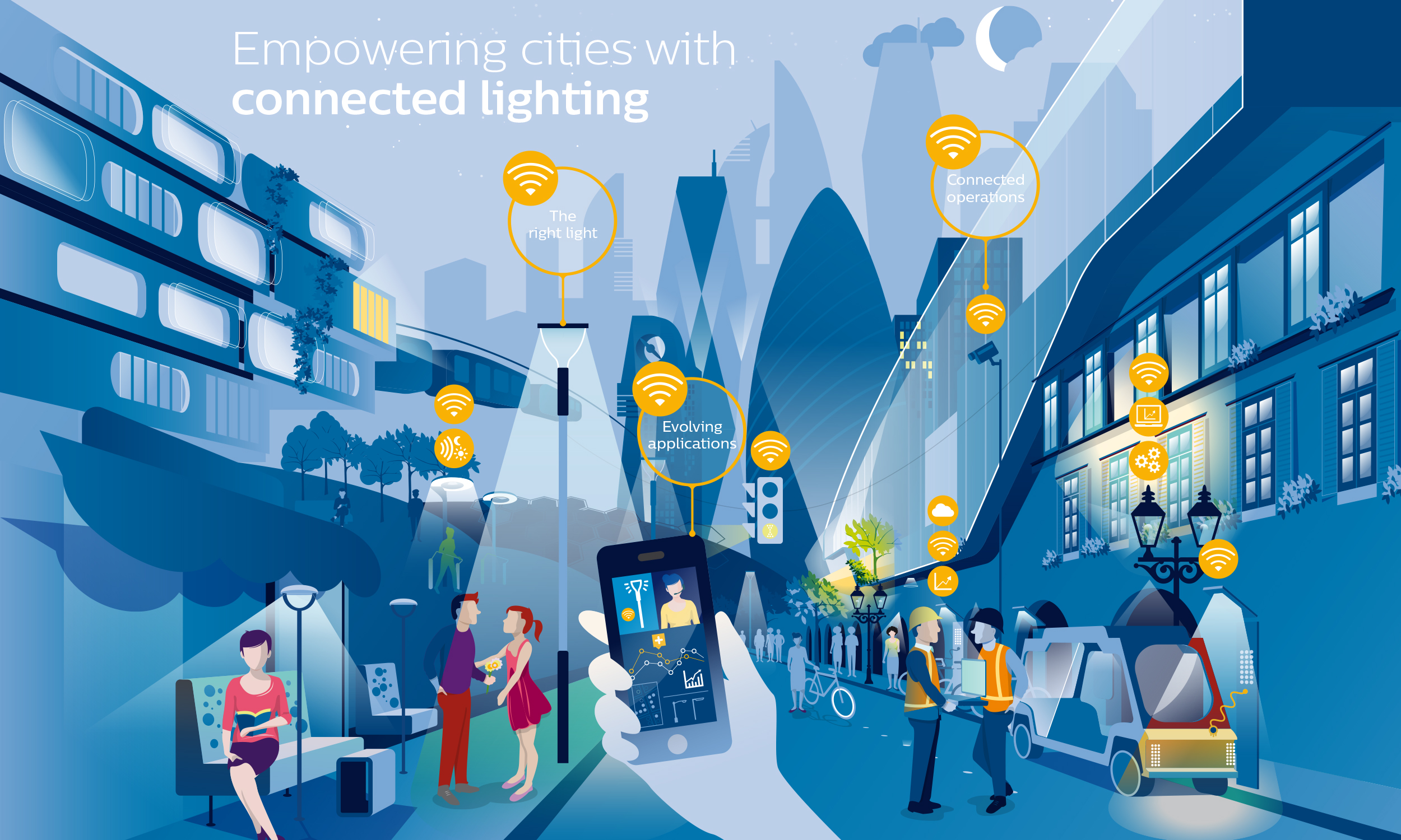 The brief was to create a city of the future based upon connected lighting and smart technology apps and imagine how it would look as cities constantly evolve over time.