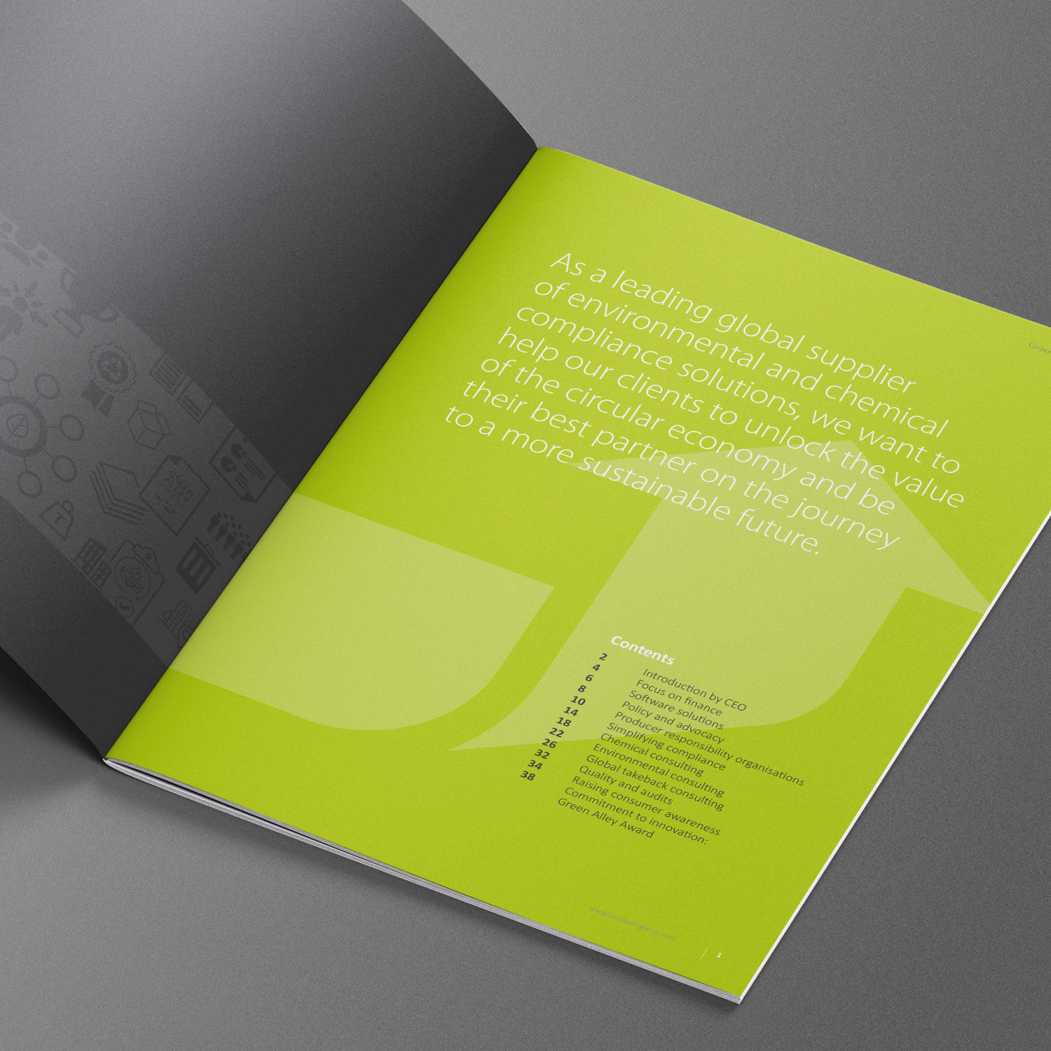 Helping a leading global supplier of environmental and chemical compliance solutions communicate this year successful partnerships within the circular economy through their Annual Performance Review brochure.