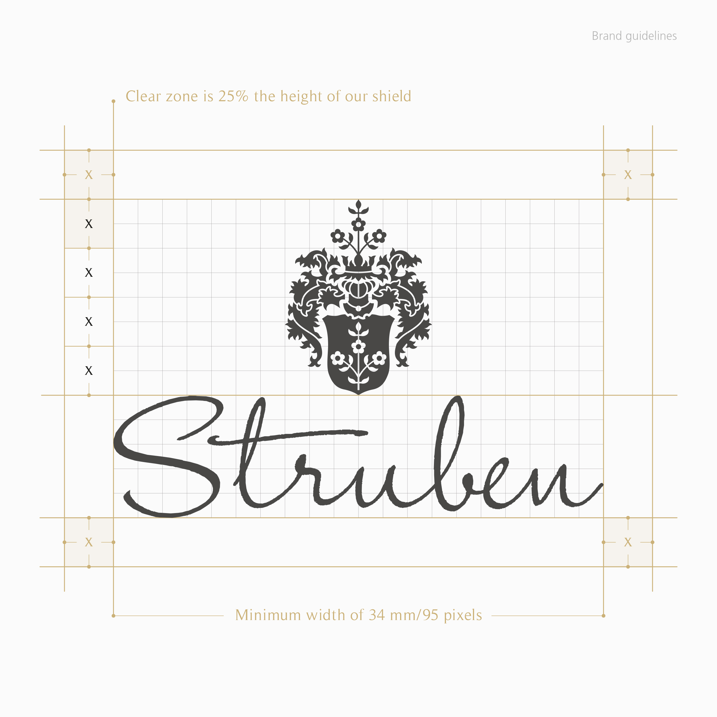 In response to the initial brief and current branding, it was clear Struben’s brand mark required an evolution. Their family crest forms an important part of their heritage, so retaining this brand mark was key. The first step in the process for this brand refresh was to set about refining and simplifying the crest design giving the mark with a more modern treatment.